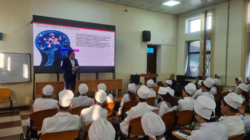 In addition, Professor Khamchiev K.M., within the framework of academic mobility, conducted practical classes and gave lectures to 2nd-year students of the medical faculty of the Tajik State Medical University named after Abu Ali Ibni Sino in the amount of 42 hours. The students were delighted and listened to the lectures with deep interest, asked questions, and actively participated in the classes.